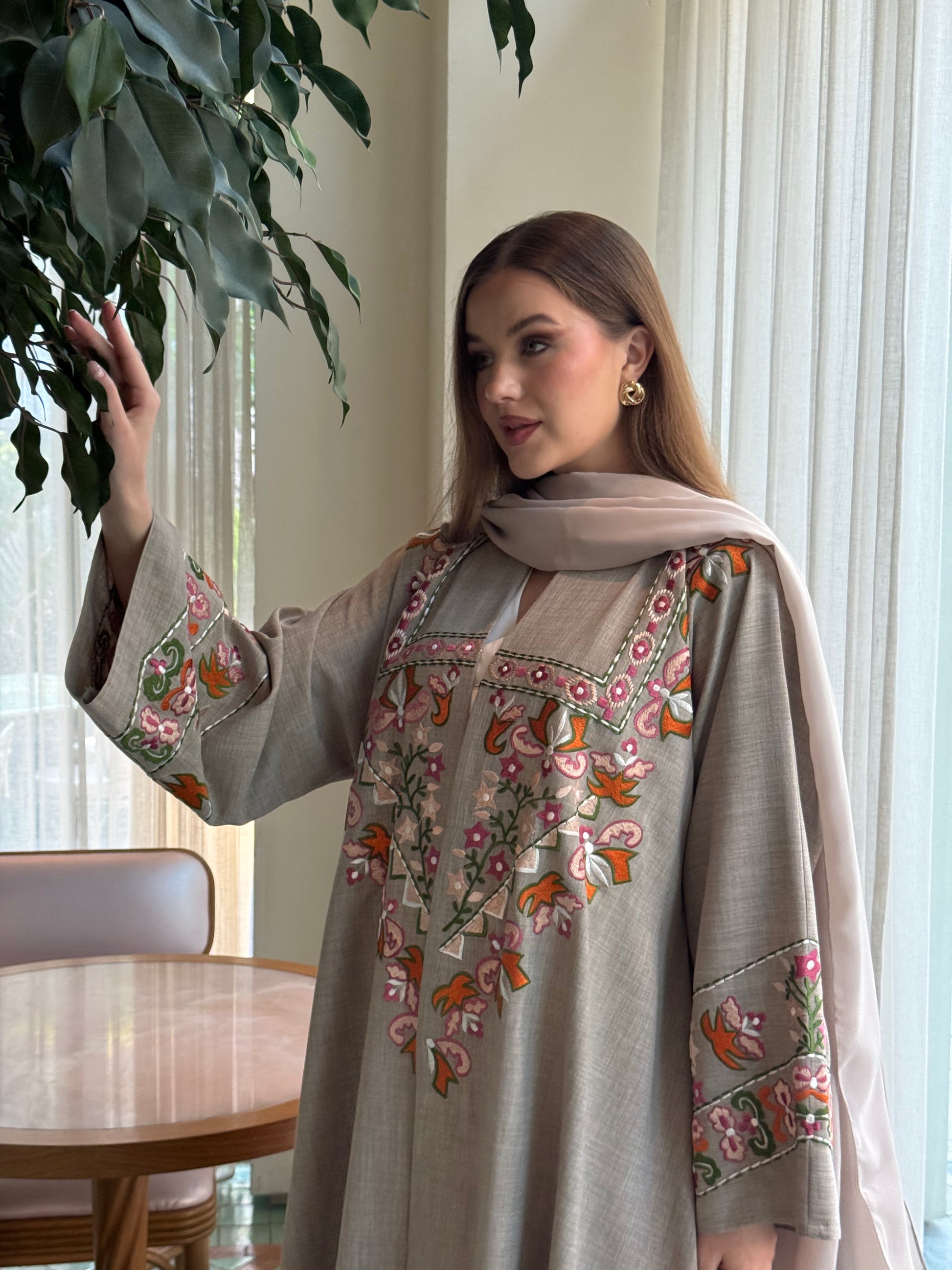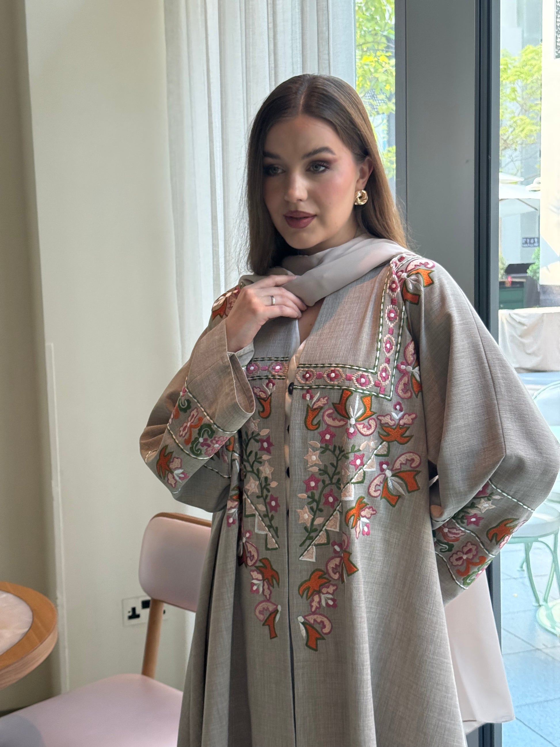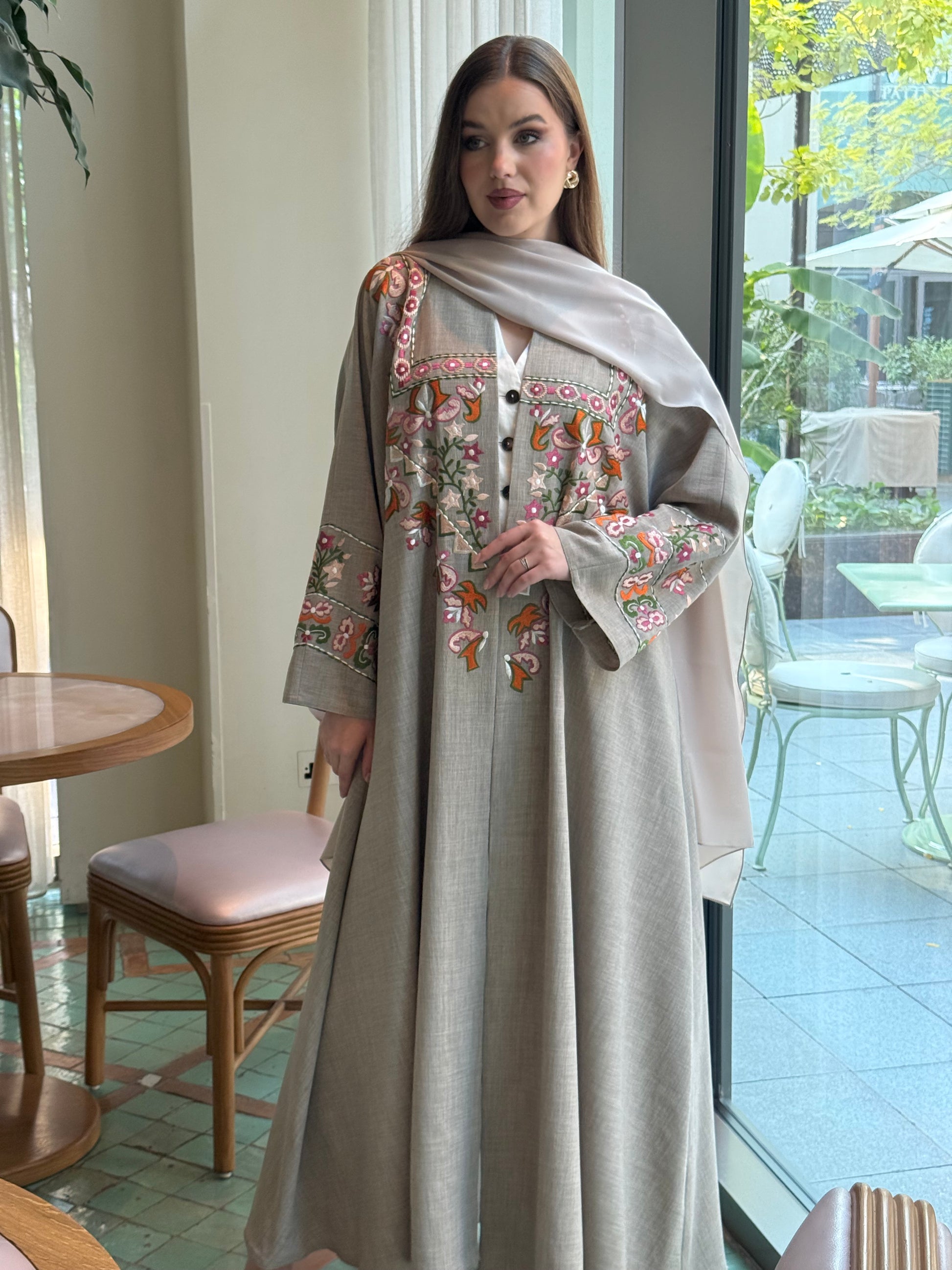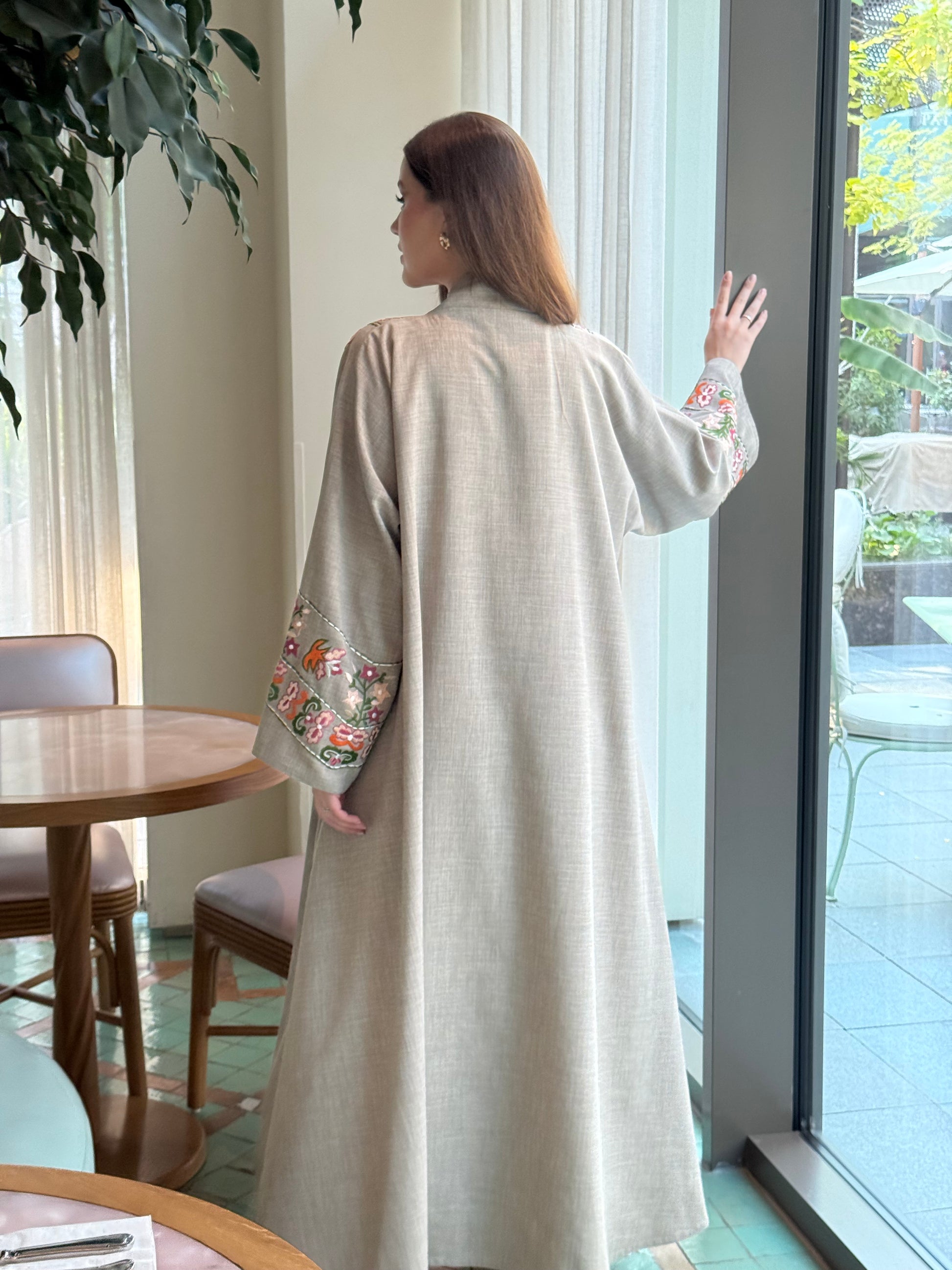 عباية أنيقة مزينة بتطريز يدوي على الأمام والأكمام