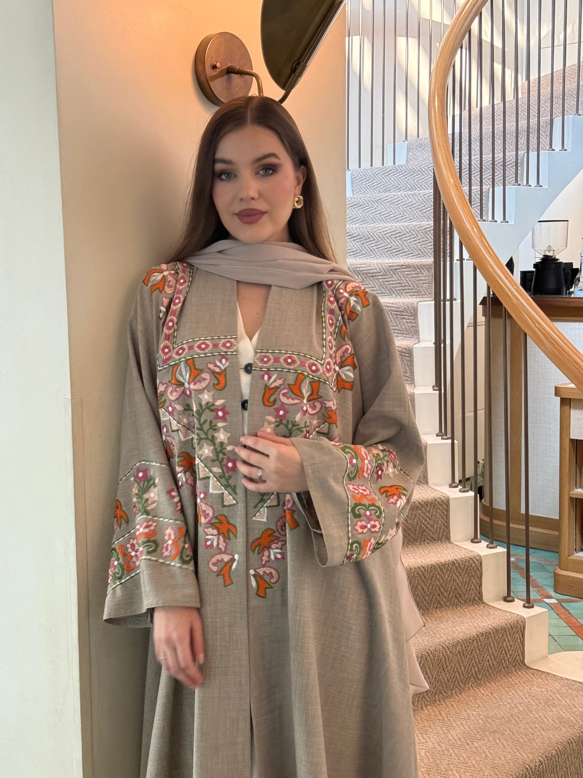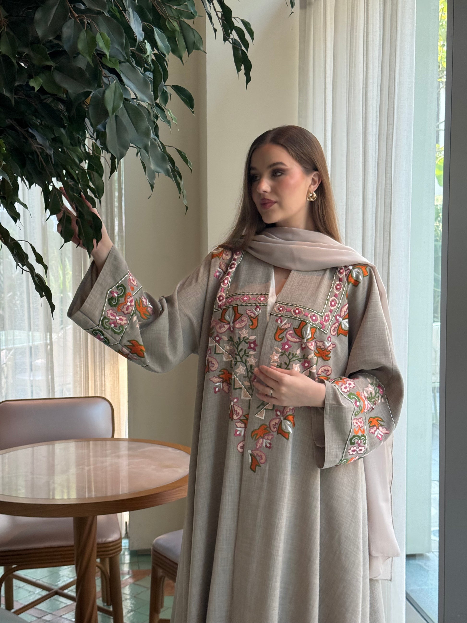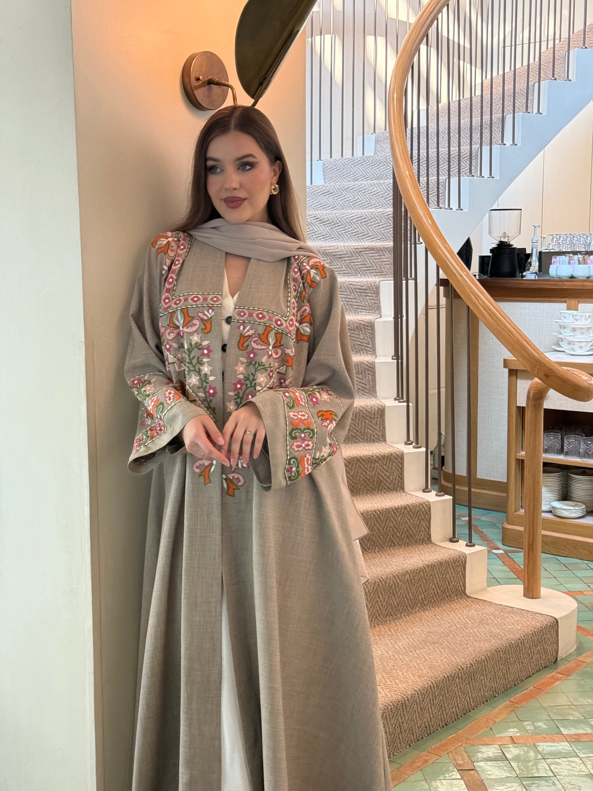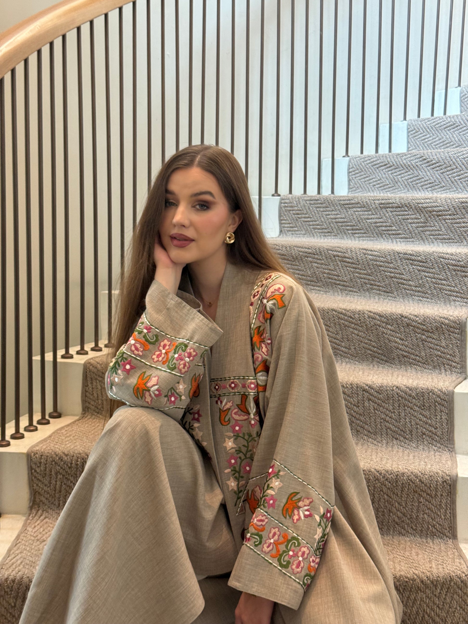 عباية أنيقة مزينة بتطريز يدوي على الأمام والأكمام